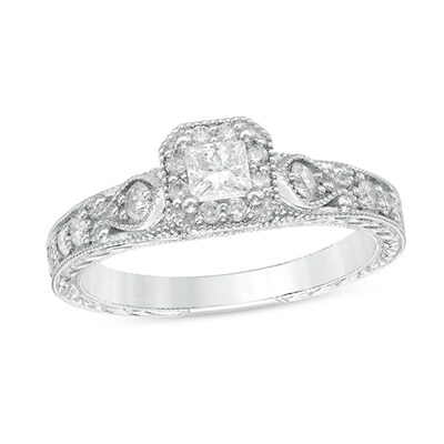 1 2 Ct T W Princess Cut Diamond Frame Vintage Style Engagement Ring In 10k White Gold Zales
